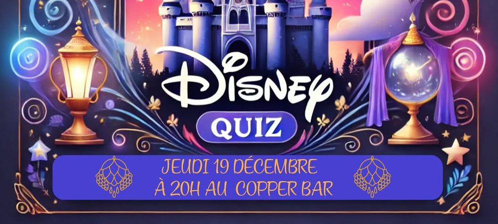Envie d'une soirée fun et conviviale avant Noël ? Rémi vous invite au Copper Bar pour tester vos connaissances sur Disney lors d'un quiz spécial. Que vous soyez un fan inconditionnel ou un novice, vous êtes les bienvenus pour une soirée animée et pleine de bonne humeur. Même la mauvaise foi est tolérée, alors rejoignez-nous !