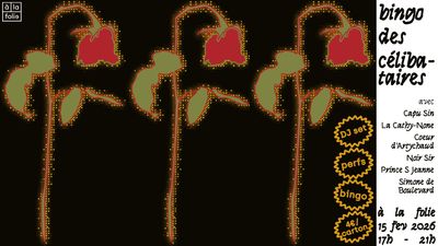 Le 15 février 2026 de 17h à 21h, rejoins les drags les plus goofy et politiques de Paris : @simonedeboulevard, @la_capu_sin, @noir.sir.king, @prince.s.jeanne, @coeur.d.artychaud et @lacathynone qui viendront égayer ton dimanche de célibataire avec un bingo lubrifié comme il faut contre les fach0s !