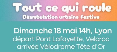 "Dimanche 18 mai, prépare tes roulettes, ta trottinette, ton vélo ou ton skate : la 1ʳᵉ édition de Tout ce qui Roule s’empare des rues de Lyon pour une déambulation urbaine festive et inclusive !"