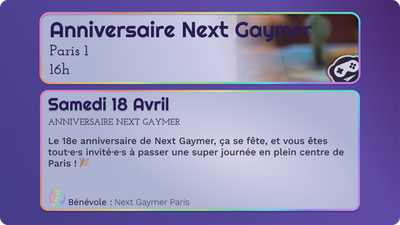 Le 18e anniversaire de Next Gaymer, ça se fête, et vous êtes tout·e·s invité·e·s à passer une super journée en plein centre de Paris ! 🎉