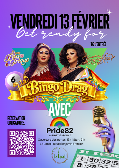 À propos de l'événement🎤 BINGO DRAGUne soirée bingo pas comme les autres, rythmée par plusieurs shows drag, de l’humour, du glamour et une ambiance survoltée. Prends ta place, révise ton “BINGO” et laisse les queens faire le reste.👠