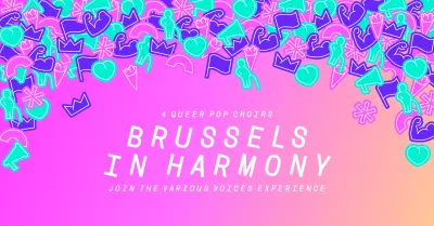 Sing Out Brussels!, Tapalanote, Punch Art et Q-Team vous présentent Brussels in Harmony ! Les quatre chorales LGBTQIA+ de Bruxelles se réunissent pour la première fois pour une soirée exceptionnelle et inoubliable, placée sous le signe de la rencontre, du partage et de la musique.
