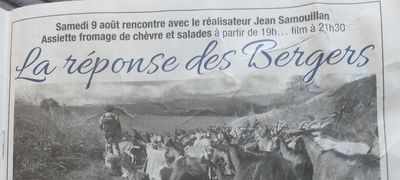 " samedi 9 aout rencentre avec le realisateur Jean Samouillan, assiete fromage de chevre et salades a partir de 19h film 21:30- duree 1.5h