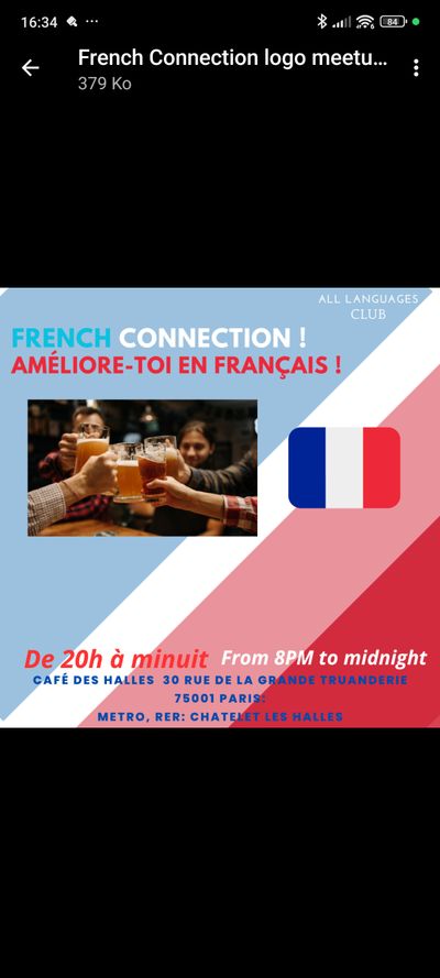 C'est un moment dédié à la langue et la culture française : apprendre en s'amusant , se faire des amis , manger bref passer un bIt is moment dedicated to the practise and also to learn about french culture : learning with fun , make friends so spend a good time !