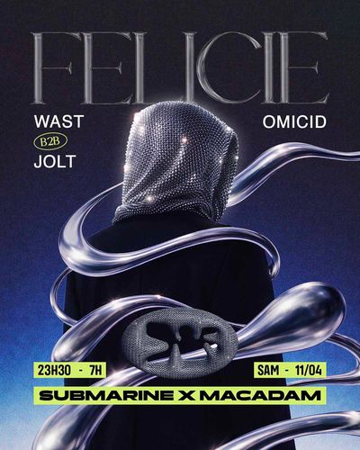 Nouveau rendez vous à Macadam en ce mois d'avril. Submarine accueille pour l'occasion Felicie, la française basée à Amsterdam. Au programme, une techno rapide parfois distordue, souvent teintée de 90’s. Pour l'accompagner, la jeune garde du label "SBMRN Records", avec Omicid, WAST en b2b avec Jolt qui nous promettent une techno aux rythmes acid, groovy et hypnotiques.