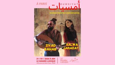 Le collectif Mechwar vous invite à découvrir les univers envoutants de Ziyad Sahab & Salwa Jaradat le 31 janvier 2026 sur la scène du Hasard LudiqueUne première partie en solo avec Ziyad au chant et au oud, suivie d’une seconde partie réunissant Ziyad (chant & oud) et Salwa au chant. Un voyage musical entre tarab, folklore palestinien et musique arabe contemporaine, mêlant tradition et modernité.Ziyad Sahab est un compositeur, joueur de oud, chanteur et écrivain libanais. Son parcours est marqué par une forte dimension expérimentale, fusionnant musique arabe, jazz et rythme latino. Salwa Jaradat, chanteuse palestinienne sera également sur notre scène. Elle explore la voix, la mémoire et les héritages musicaux arabes.